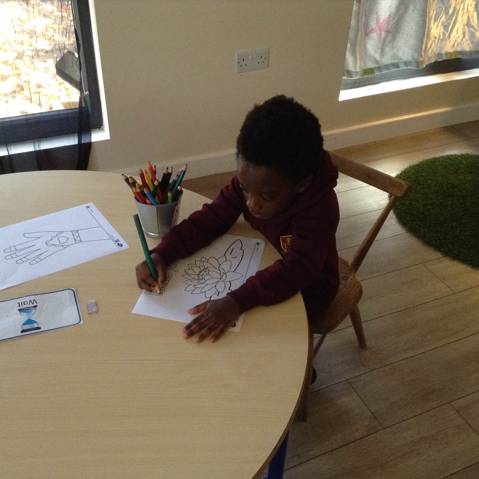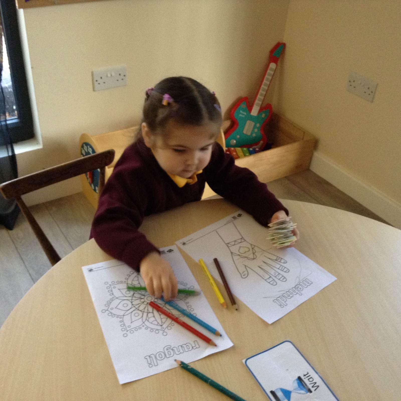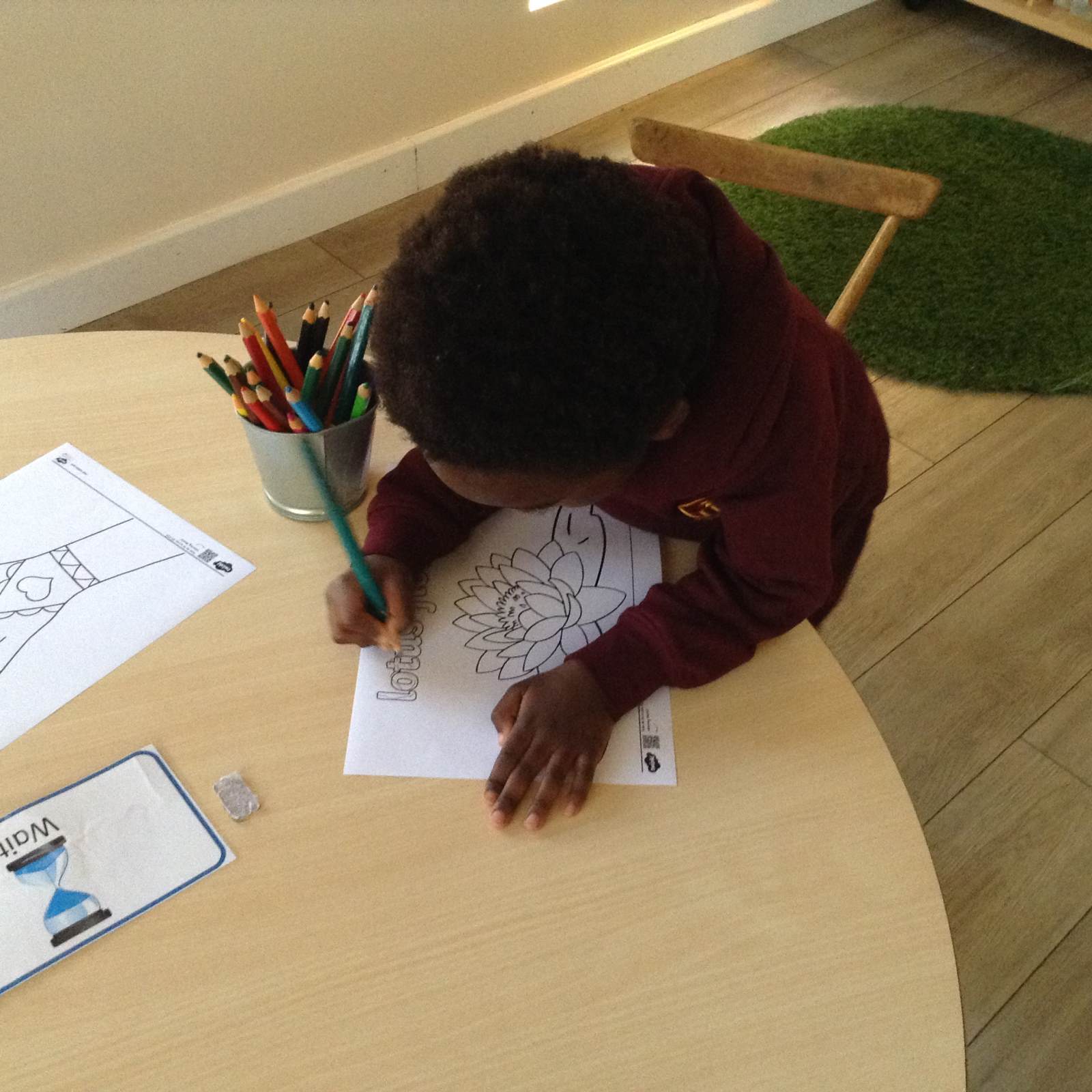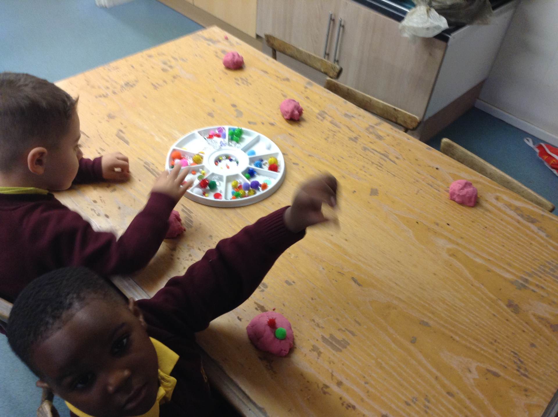 We heard about the celebration of Diwali through the sharing of pictures. We compared it to some celebrations we have across the year - Christmas and Easter. The children got to explore Rangoli patterns and got to try creating their own. Some children chose to create a diya lamp using bright colours and gems.