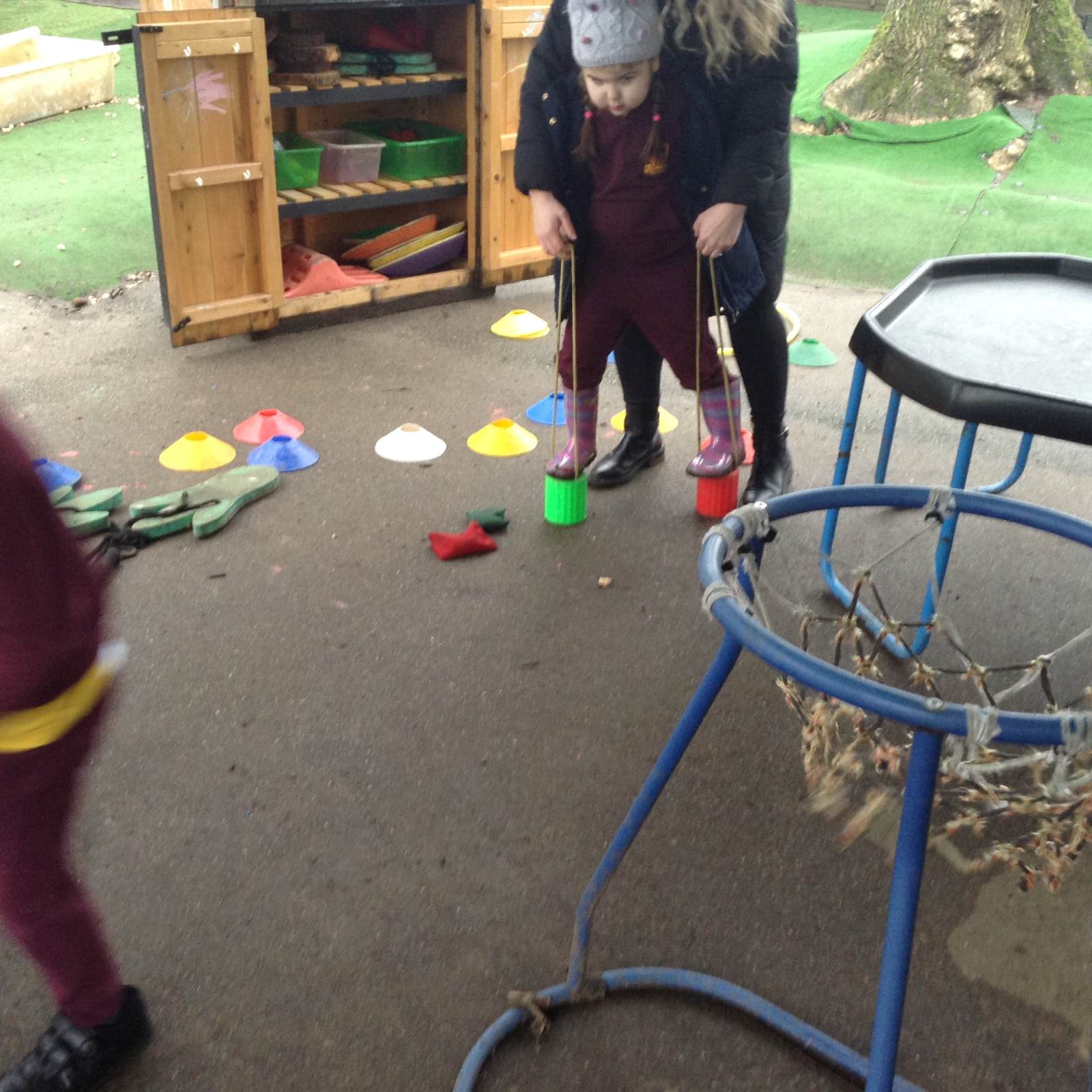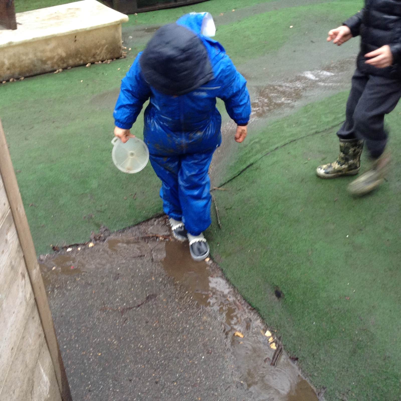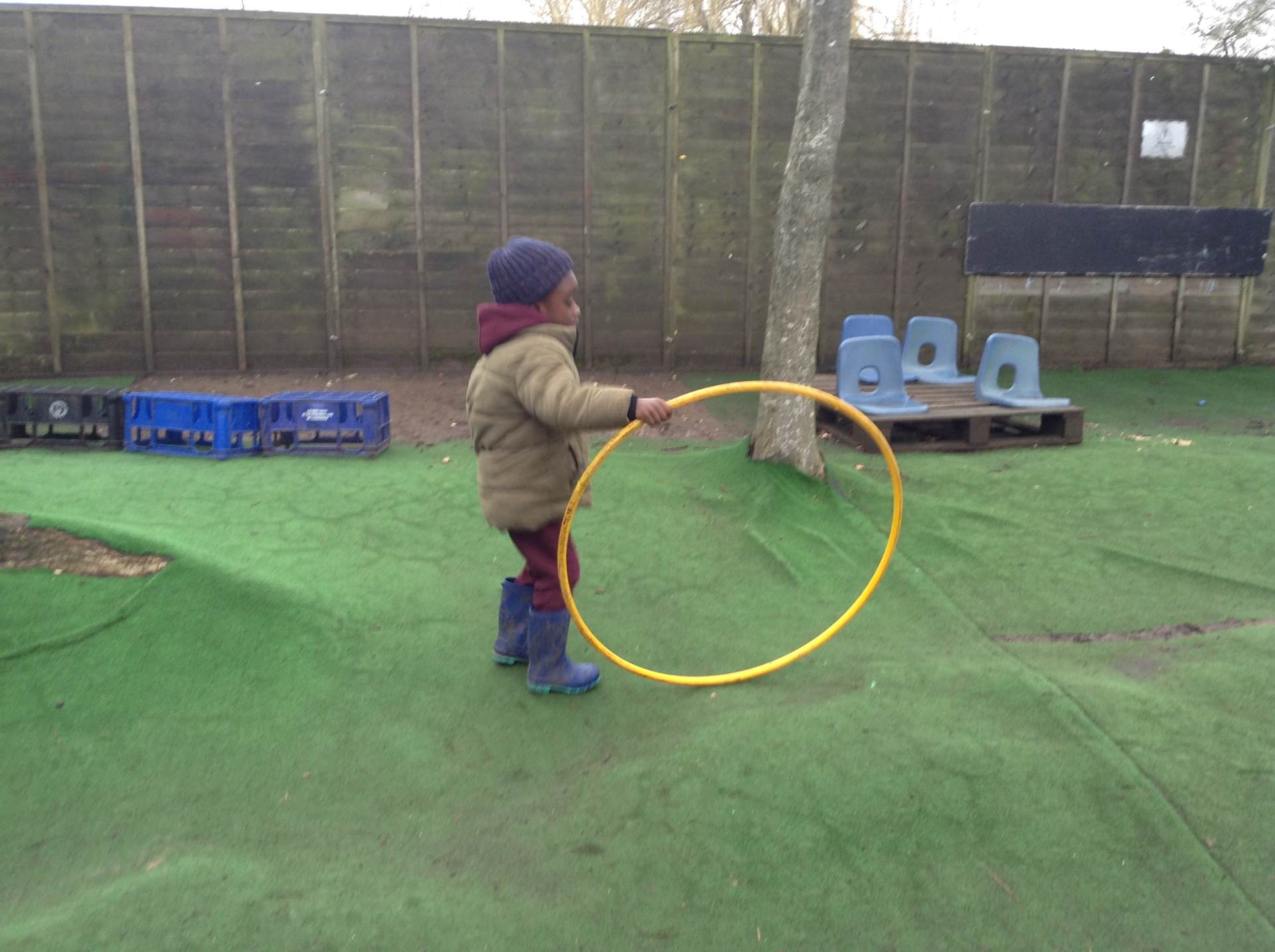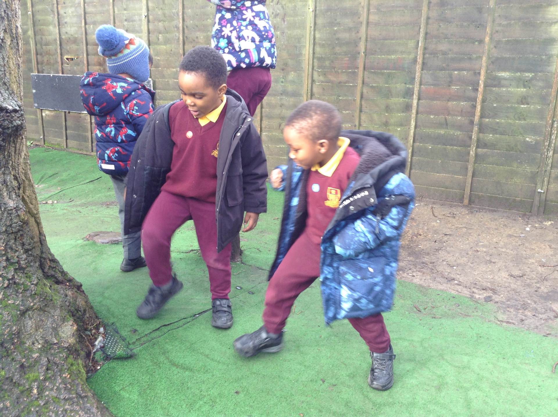 In Forest school, we spent the time exploring, encouraging the children to try different routes, climb over trees and jump down from logs and stumps. It was very messy but very fun!