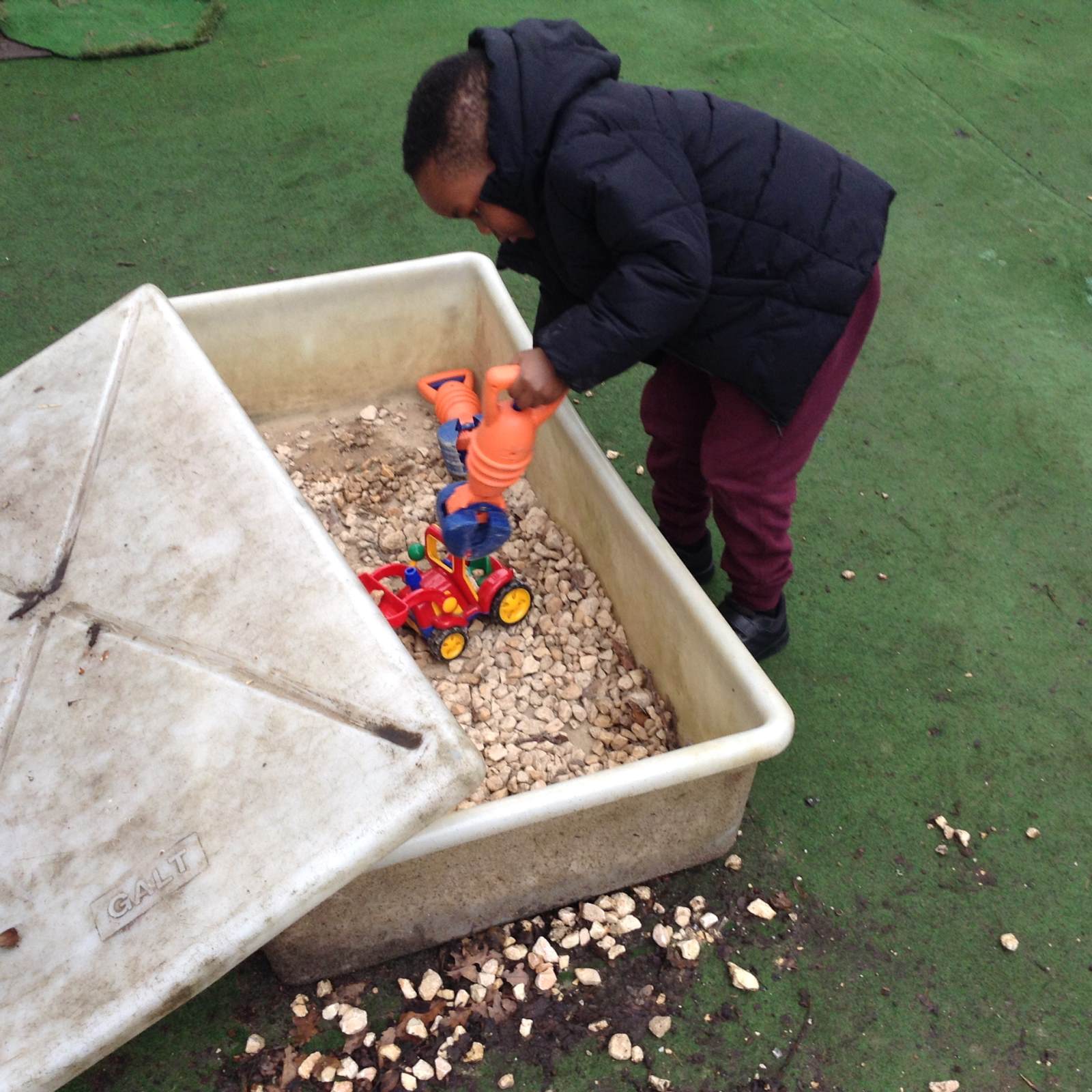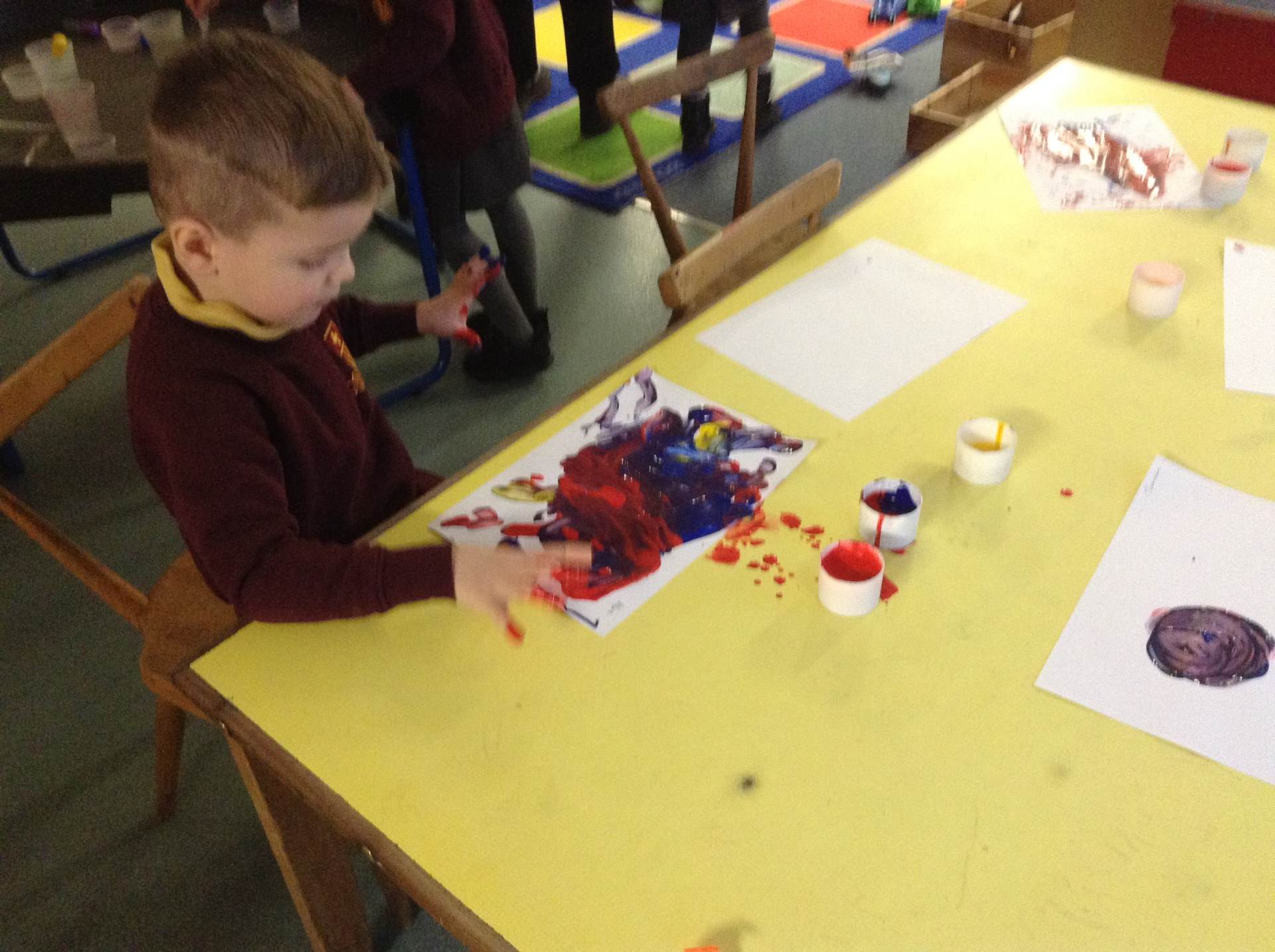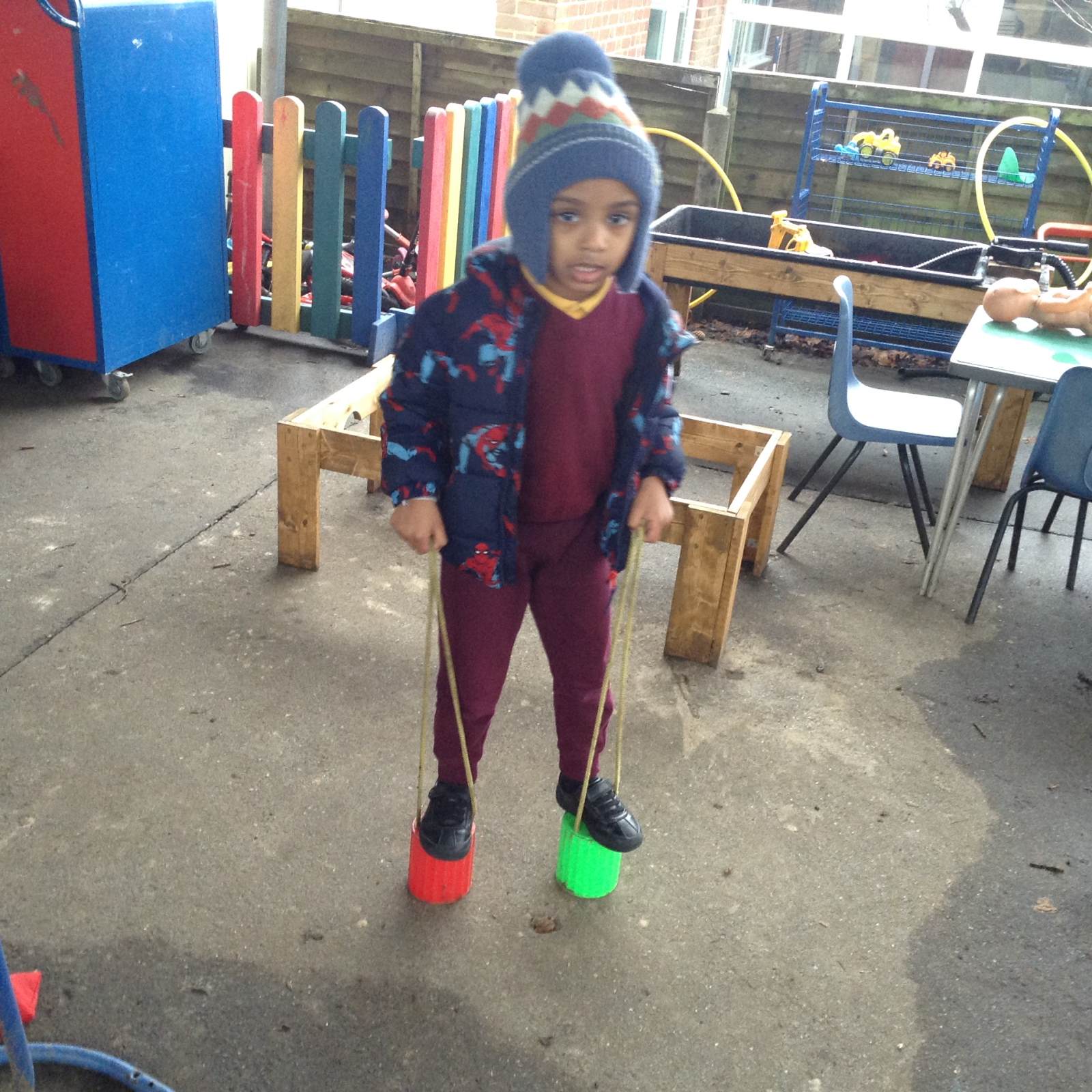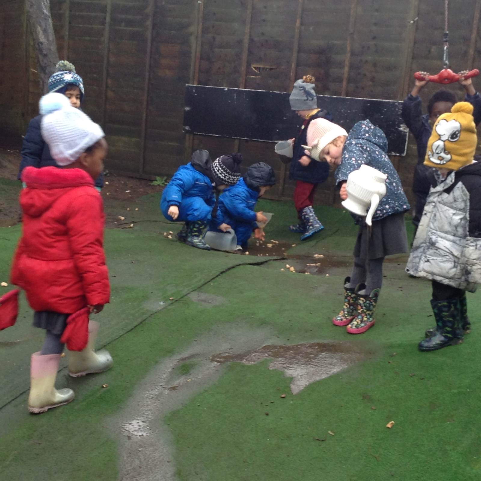 In Forest school, we spent the time exploring, encouraging the children to try different routes, climb over trees and jump down from logs and stumps. It was very messy but very fun!