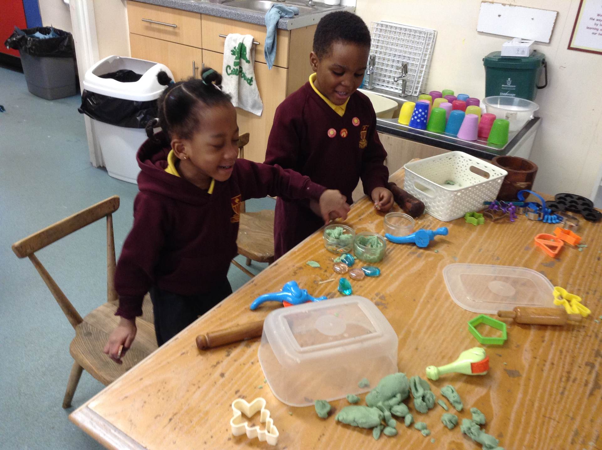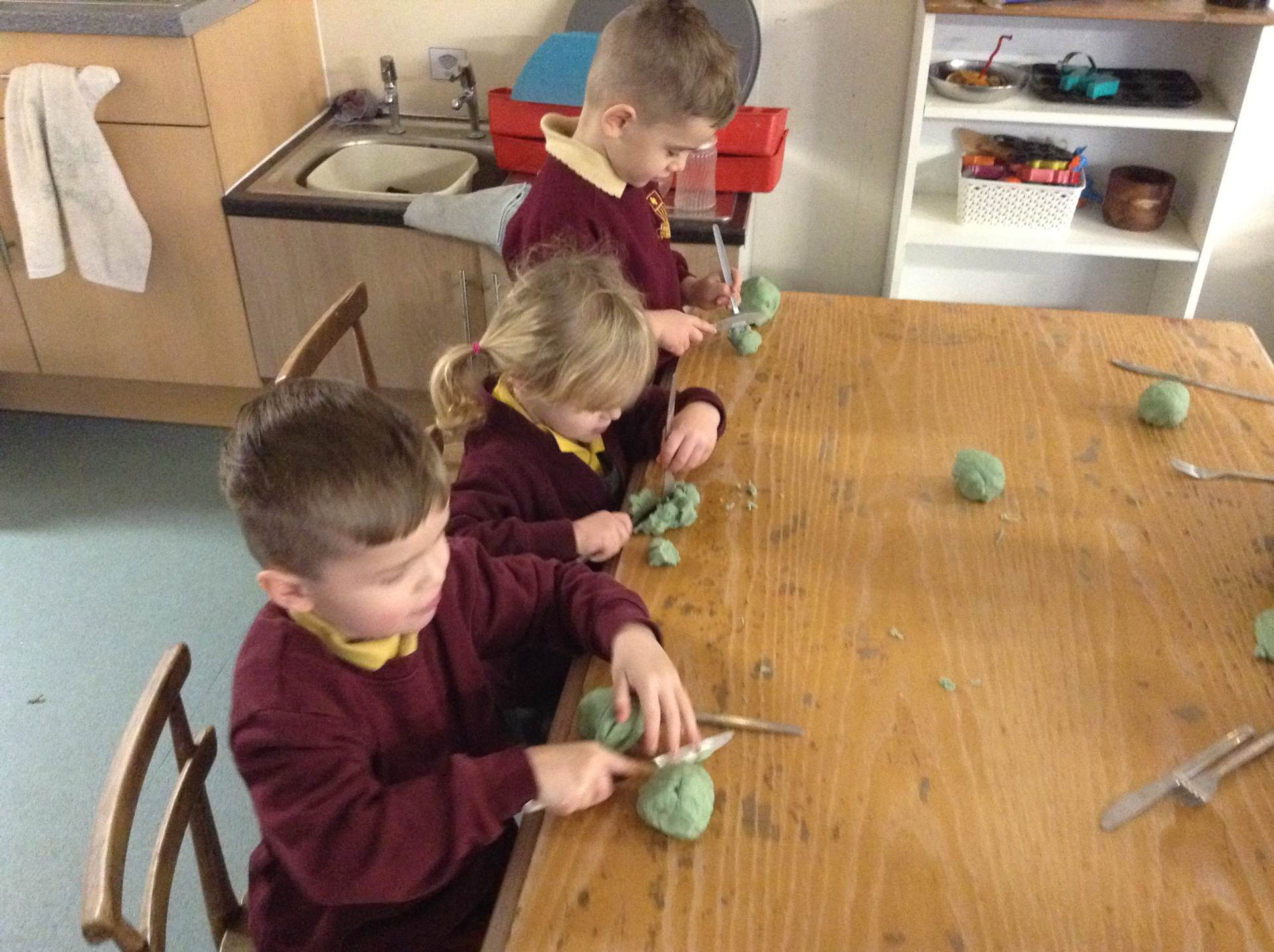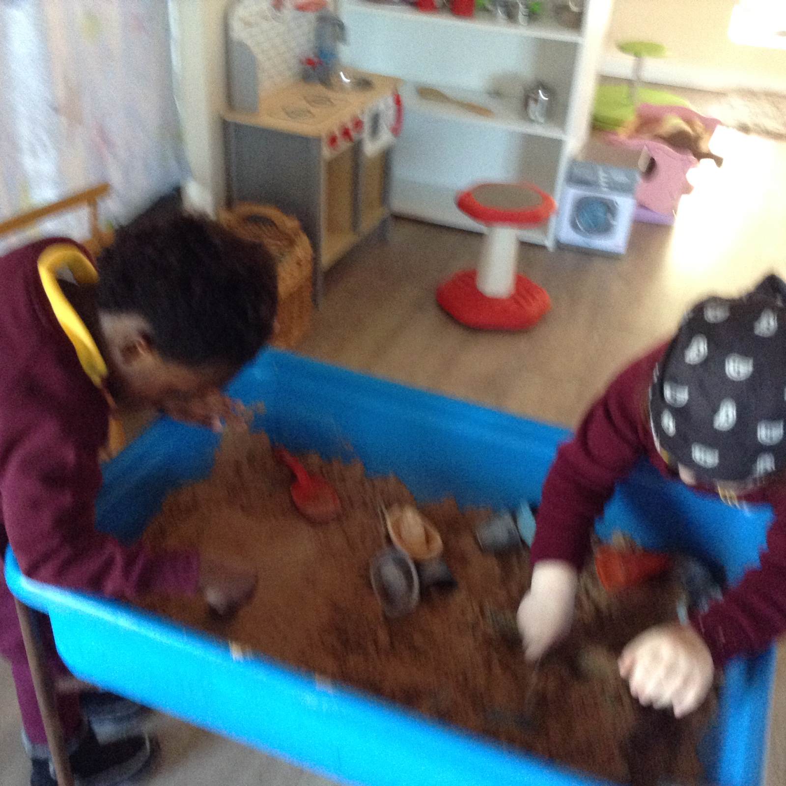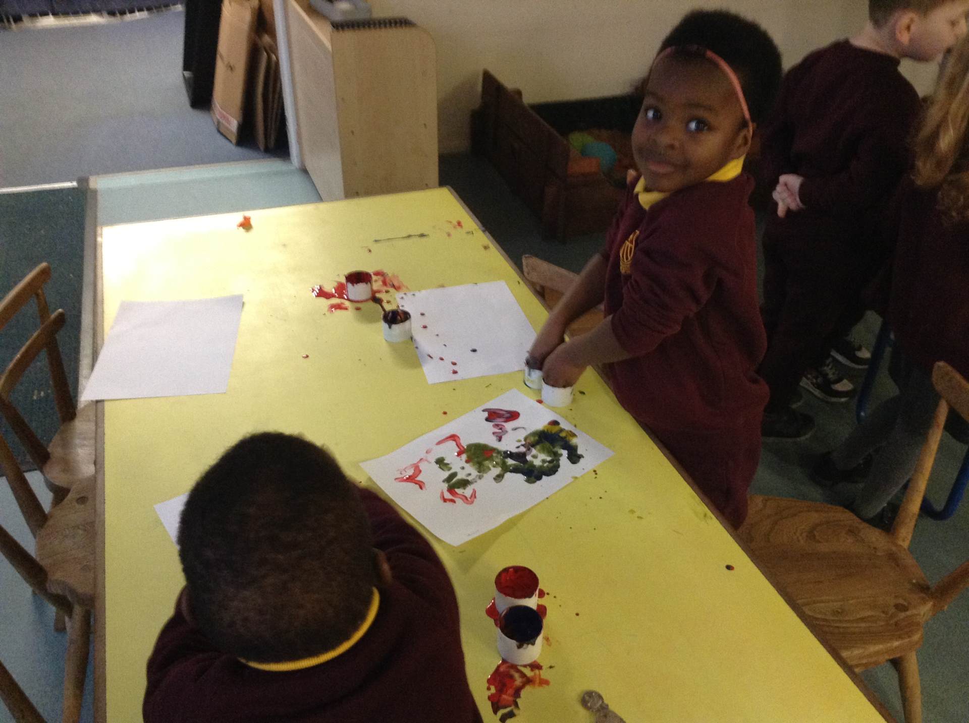 In Forest school, we spent the time exploring, encouraging the children to try different routes, climb over trees and jump down from logs and stumps. It was very messy but very fun!
