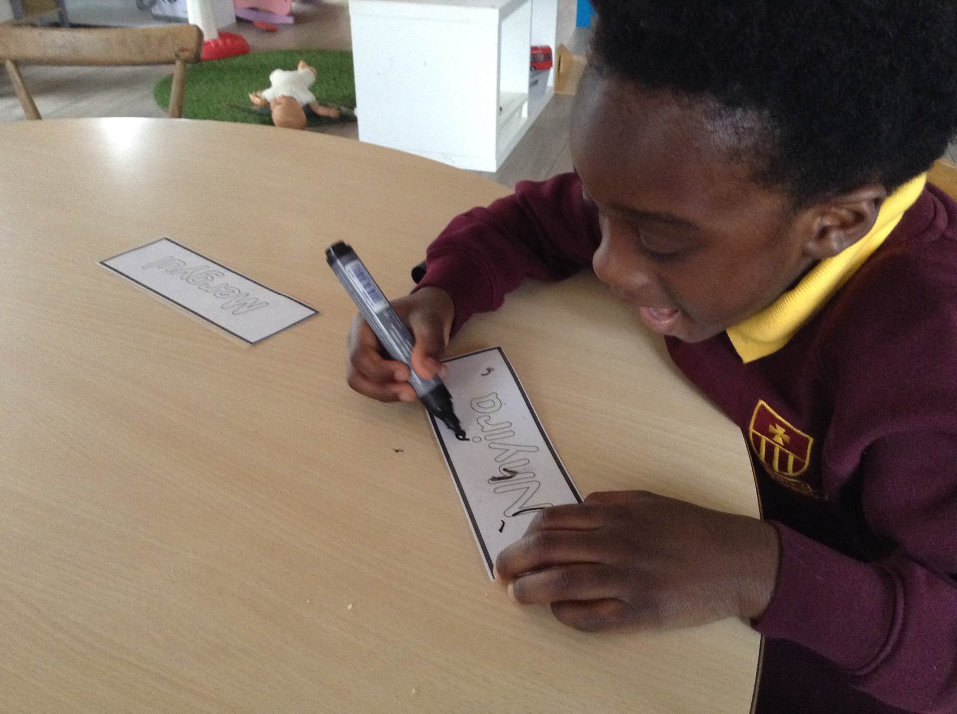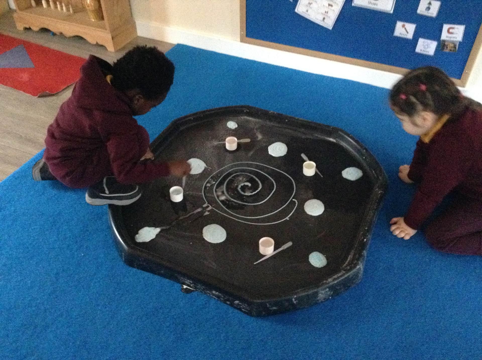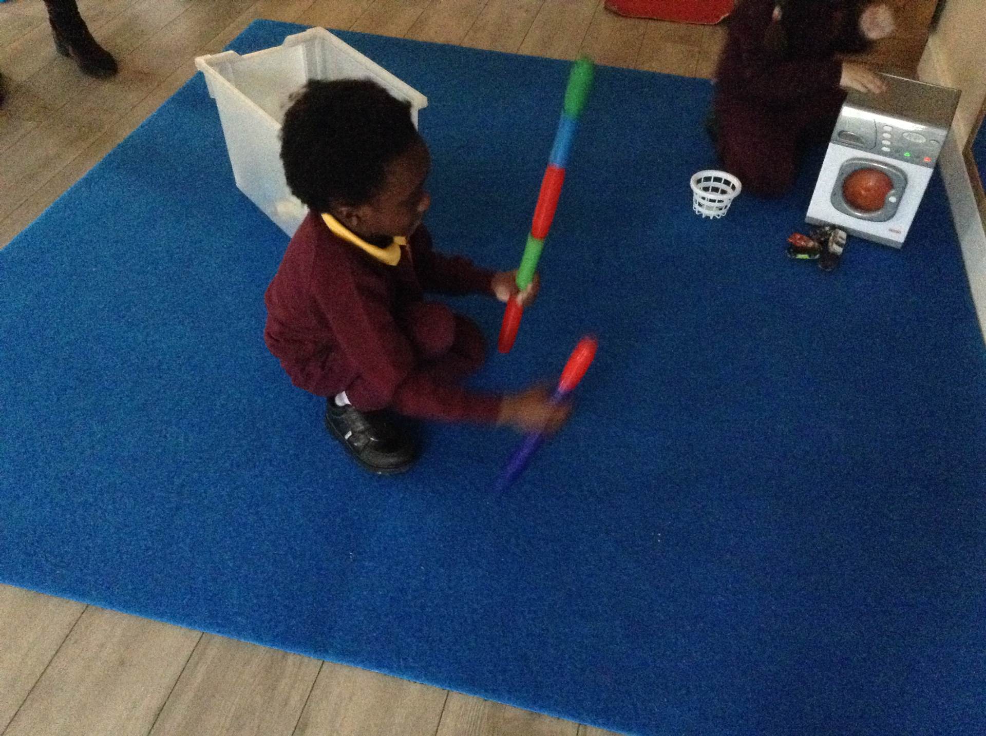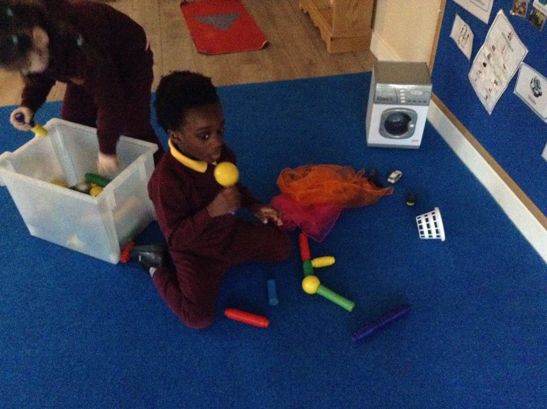 In maths we looked at the composition of number 5. What different ways can we create 5, what would it look like if we shared 5? The children had a go at doing this practically in the environment.