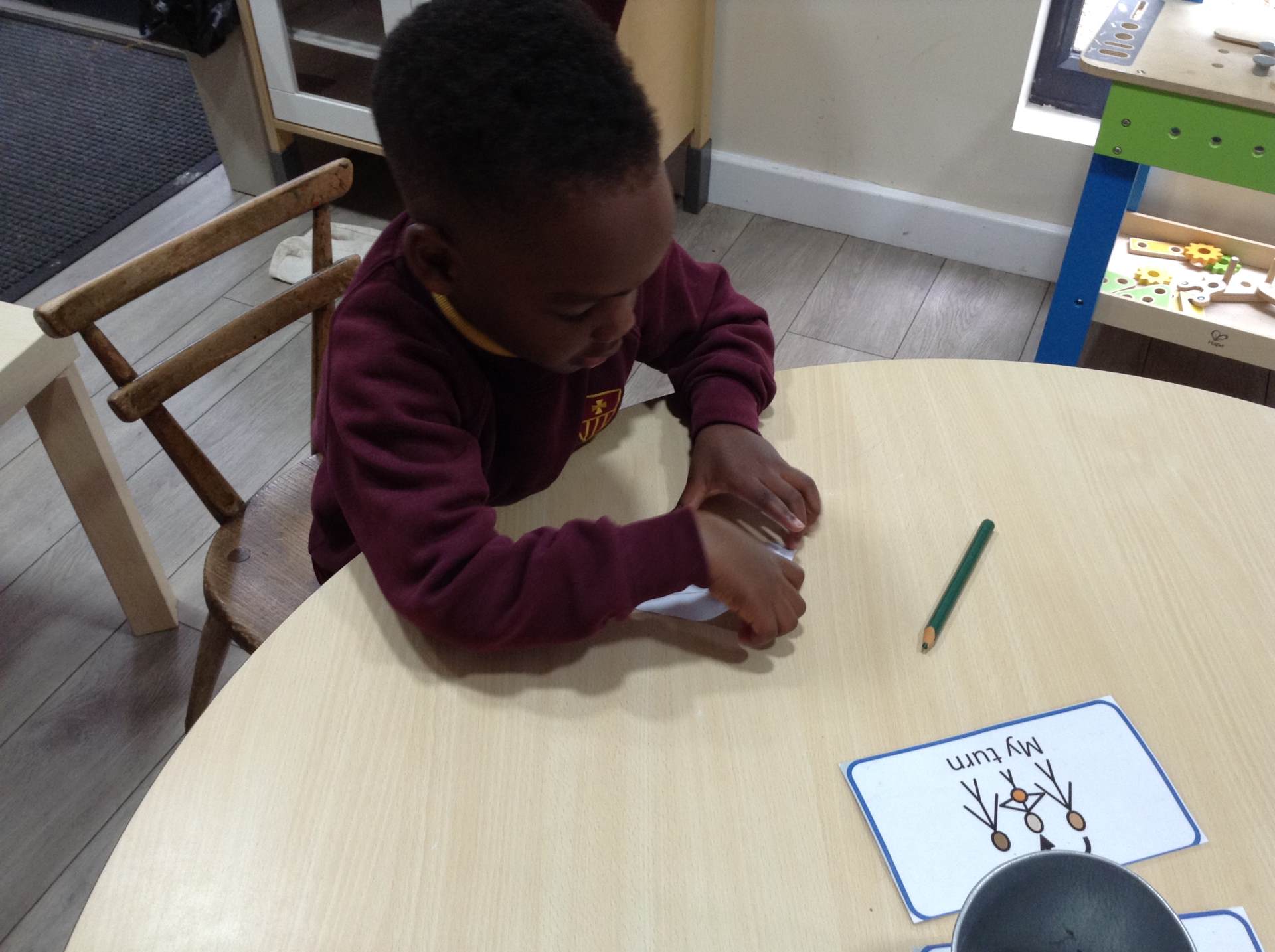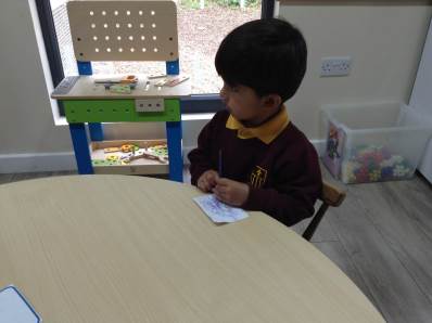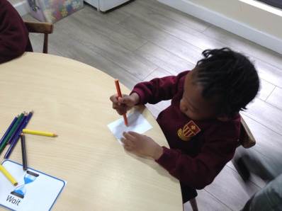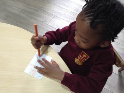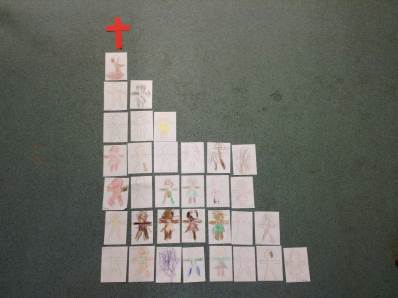 Each child drew a picture of themselves, these were then positioned together to create a church.