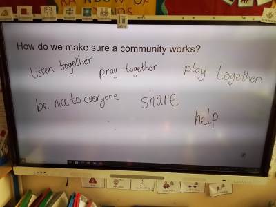 The Catholic faith is very much part of our day to day routine in Sunshine Class. We pray together first thing in the morning, before lunch and at the end of the day. There is a very special prayer table in our classroom, we use it to help us focus when we are learning about God, worshipping or praying.