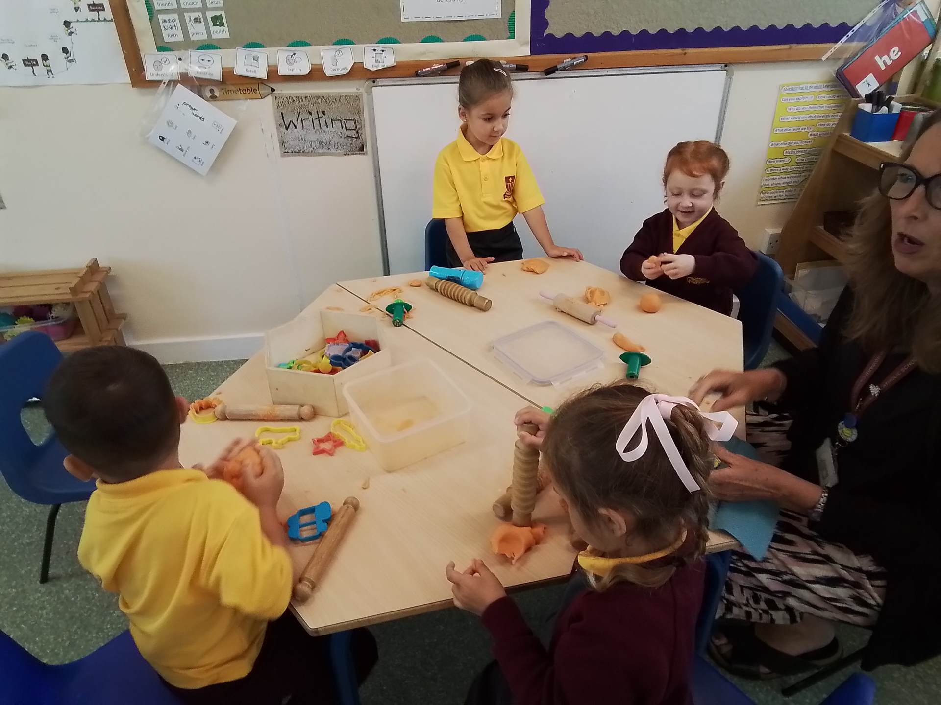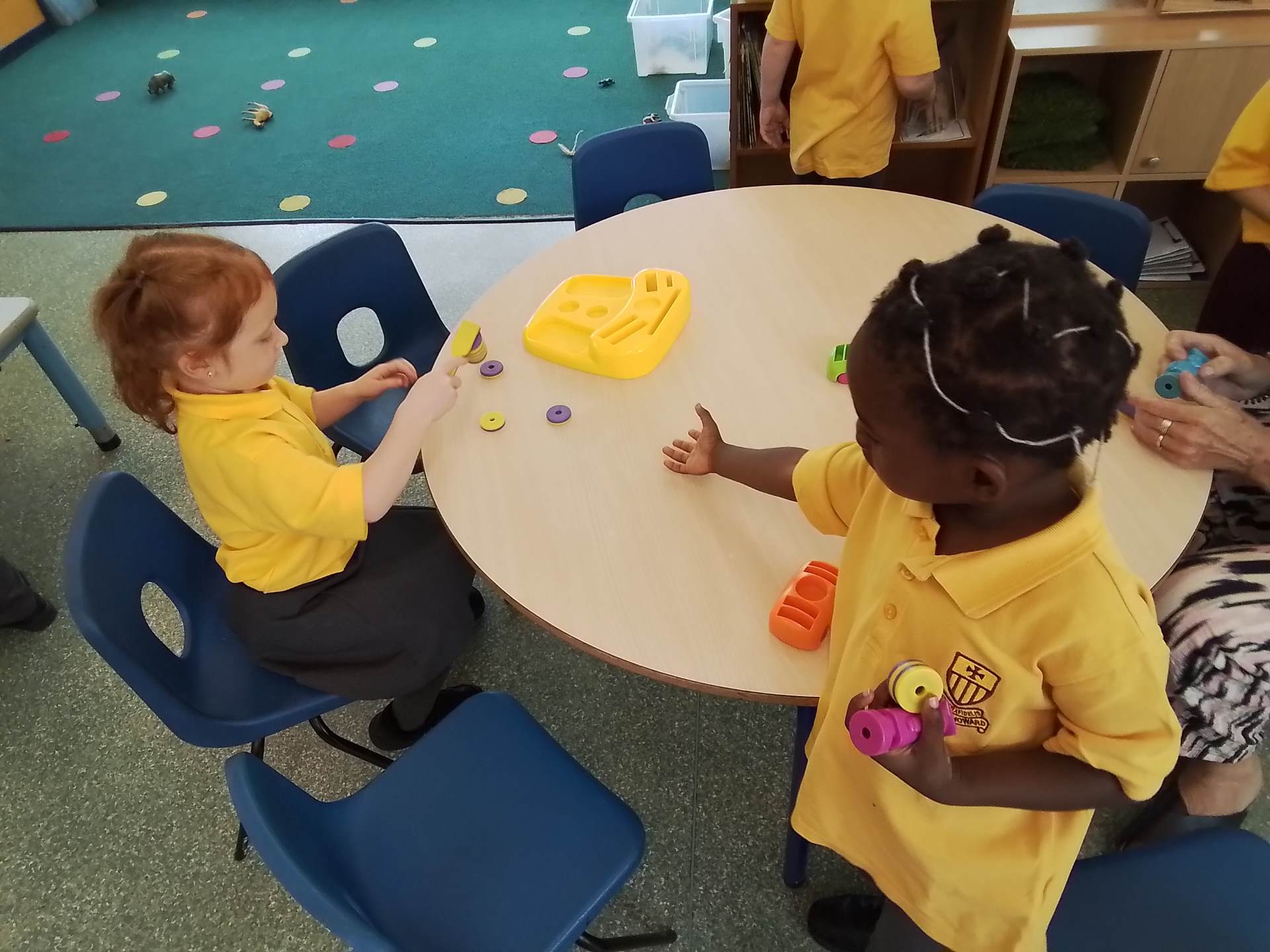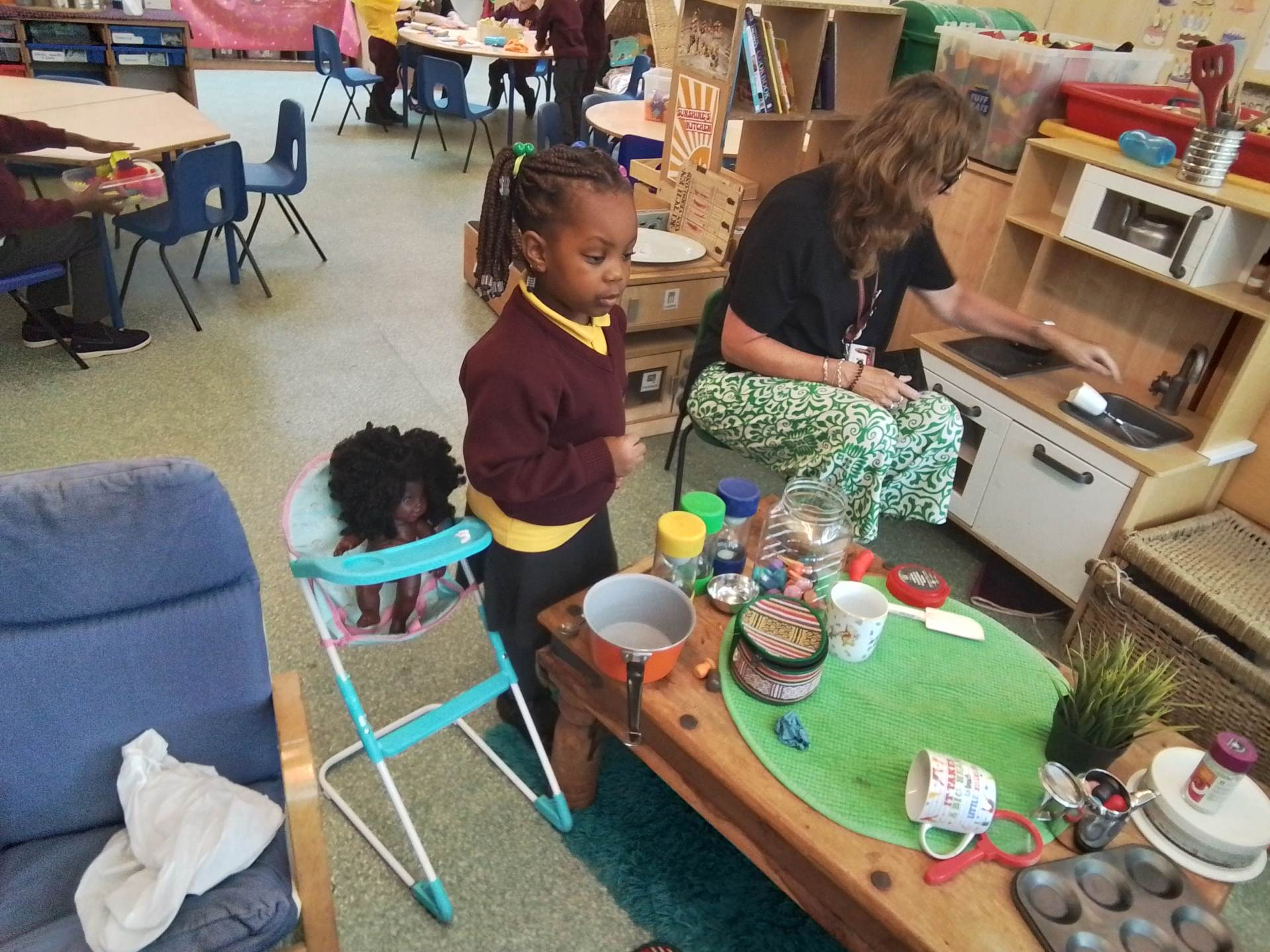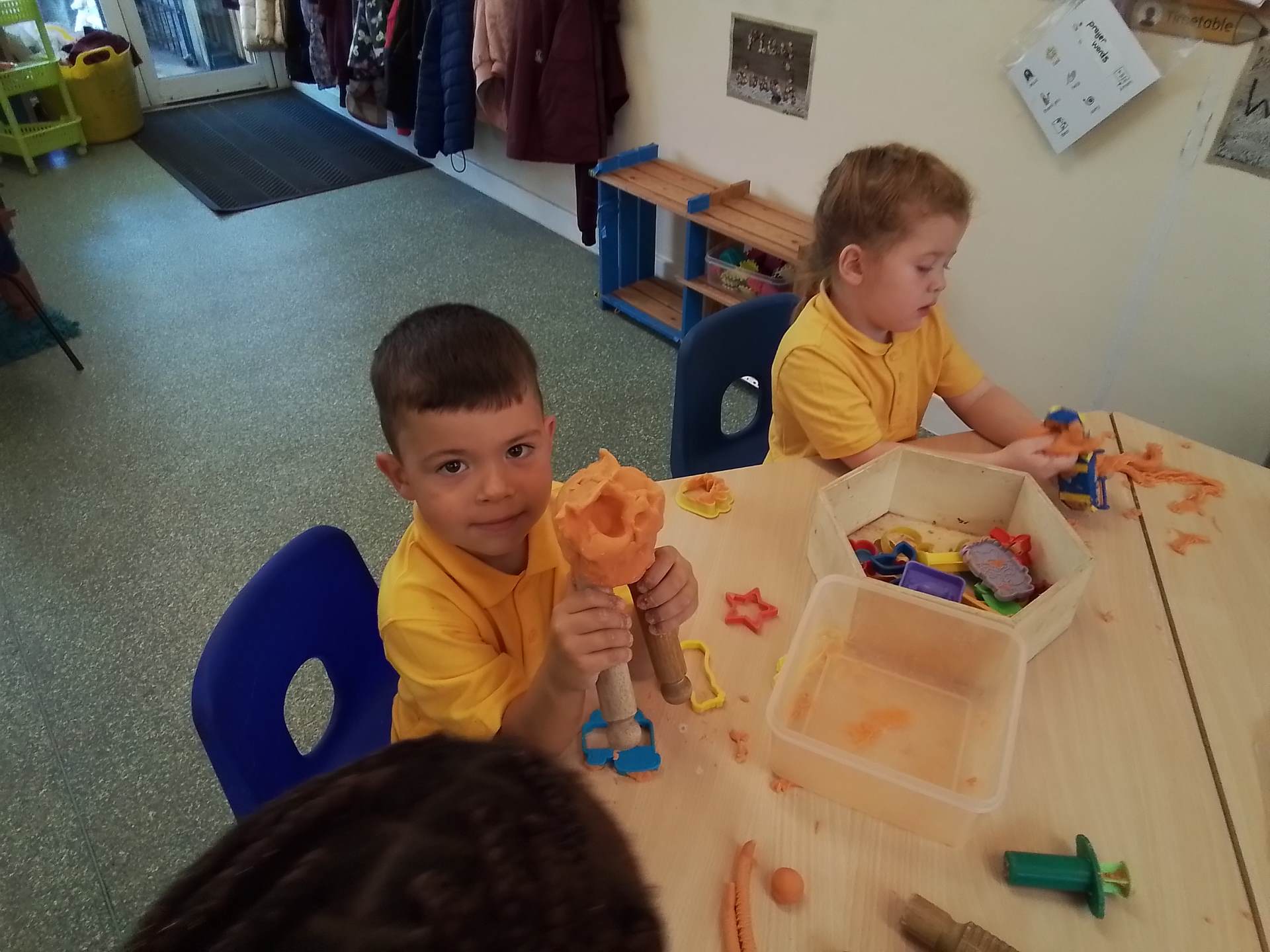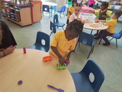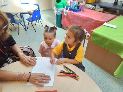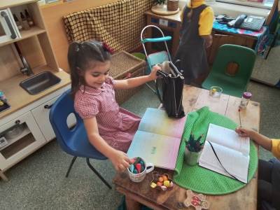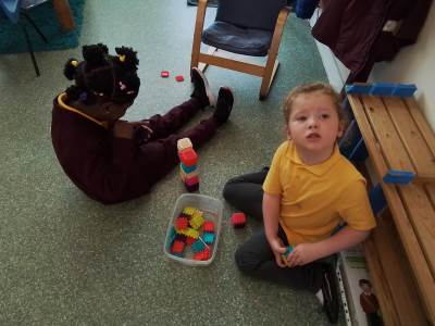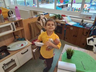 We have had a bit of a rainy start to the term but the children have come into class and settled very well. They are beginning to learn the daily routine. We can already see some new friendships forming as the children who attended Snowflakes get to know the children who came from other Nurseries. We have been very pleasantly surprised at lunchtimes, the children are having their lunch in the dining room and most of them are eating really well. Generally we have been good at sharing and taking turns. We are working on putting hands up on the carpet and not calling out!
