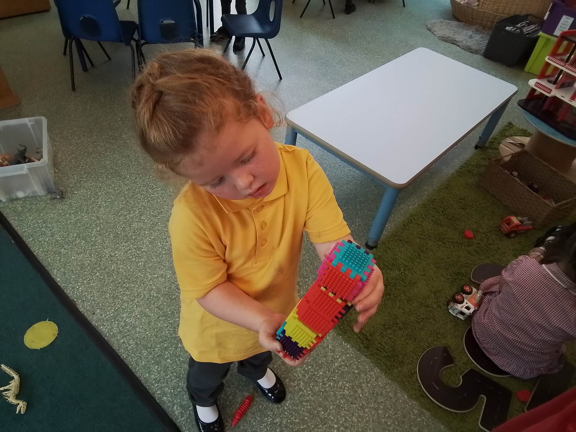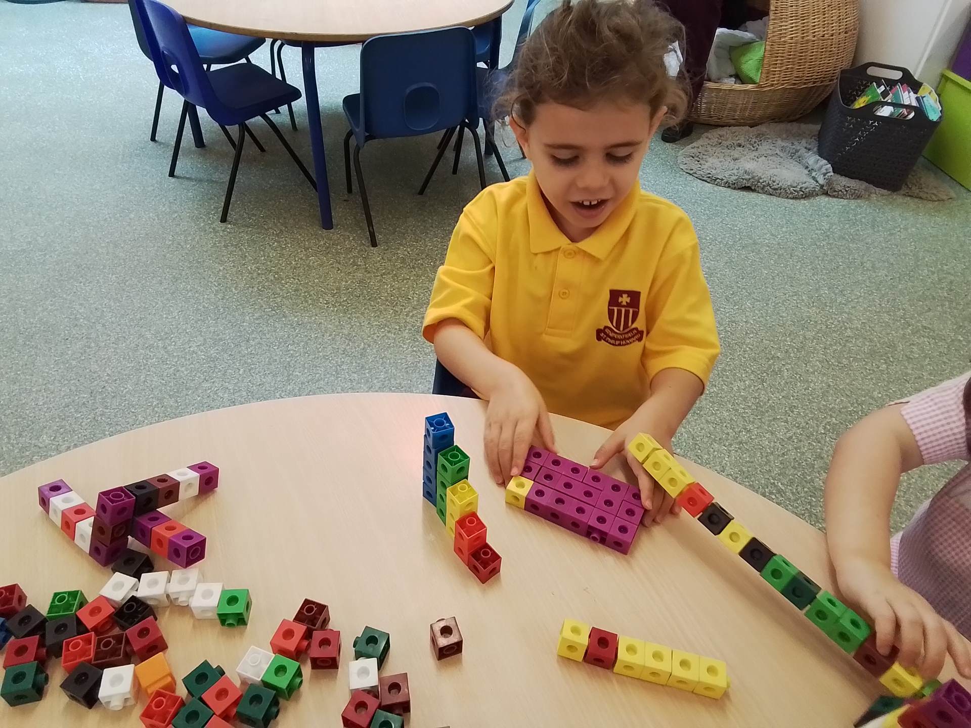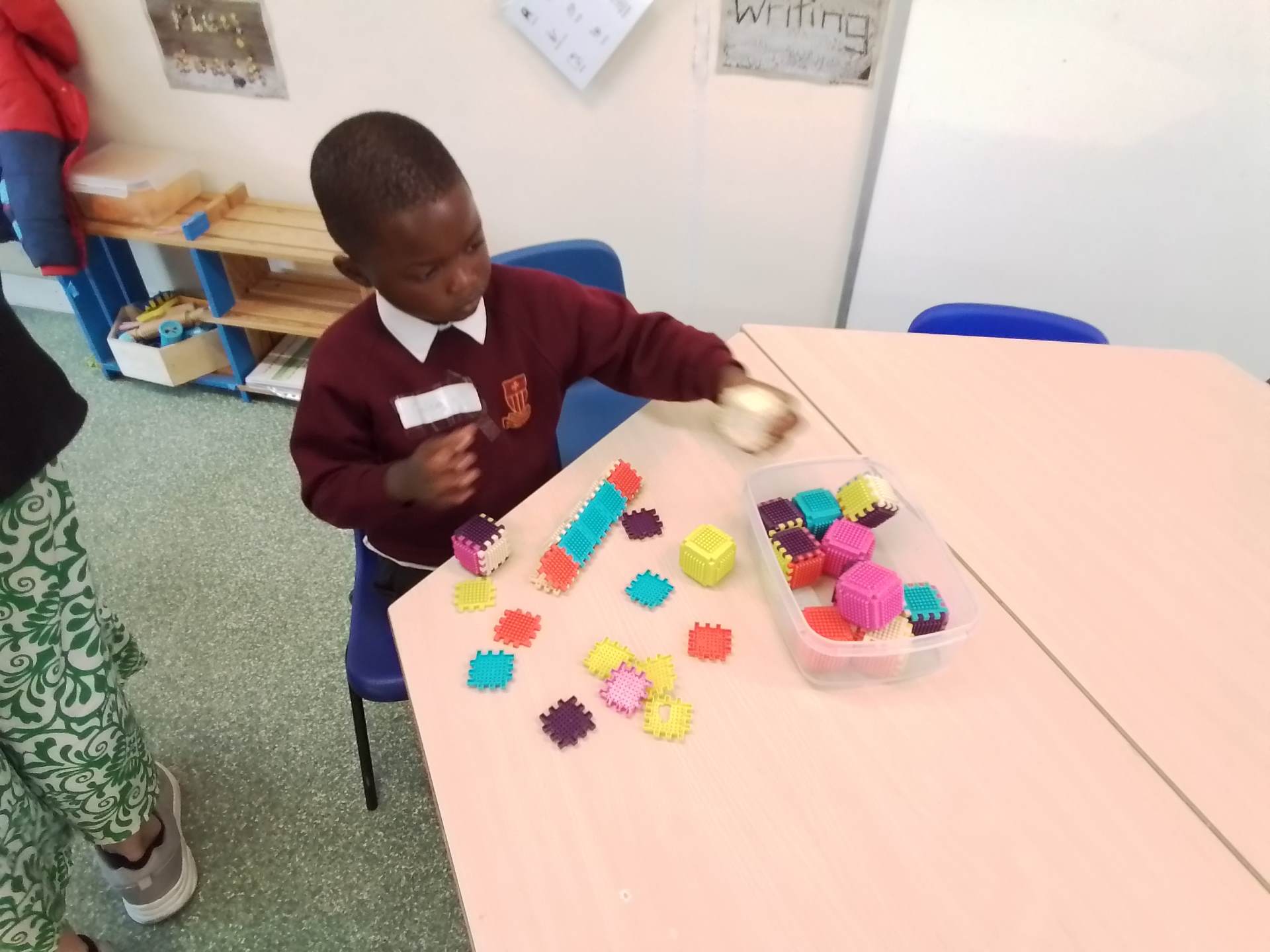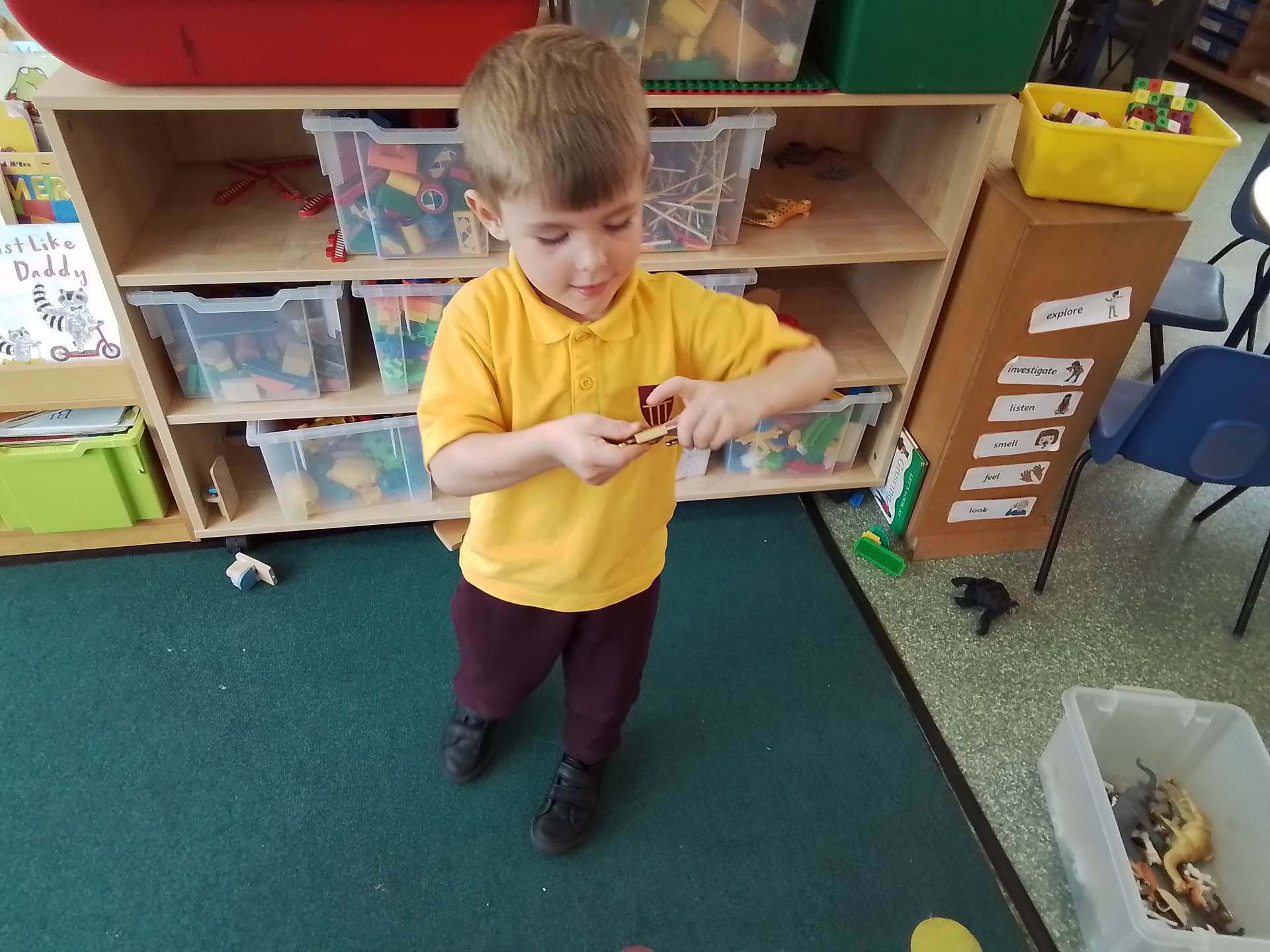 We have had a bit of a rainy start to the term but the children have come into class and settled very well. They are beginning to learn the daily routine. We can already see some new friendships forming as the children who attended Snowflakes get to know the children who came from other Nurseries. We have been very pleasantly surprised at lunchtimes, the children are having their lunch in the dining room and most of them are eating really well. Generally we have been good at sharing and taking turns. We are working on putting hands up on the carpet and not calling out!